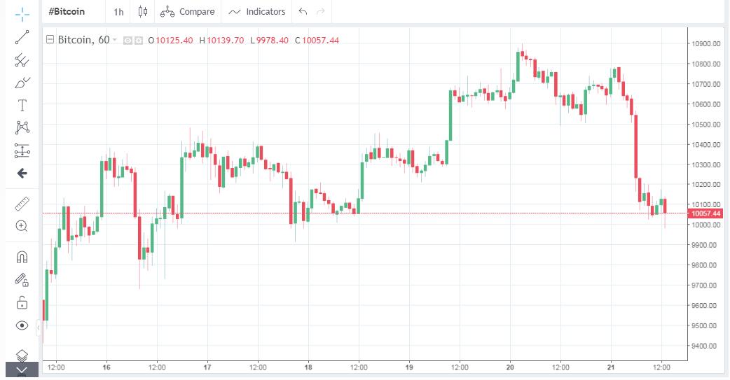আজকে বিটকয়েনের দাম মার্কিন ডলারের বিপরীতে 10,500 ডলারেরও বেশি যেতে পারছে না এবং 10300 ডলারের নিচে নেমে এসেছে। দাম বর্তমানে 10350 ডলার এবং 10500 এর রেসিস্টেন্স লাইনের নীচে একটি বেয়ারিশ জোনে ট্রেড করছে। দাম খাড়াভাবে নামার পরে $10000 এর সাপোর্টে একটি ডাউনসাইড ব্রেক নিতে পারে।