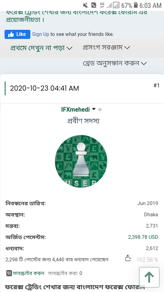 হ্যাঁ ফরেক্স ফোরাম এ বর্তমানে এফএক্স মেহেদী ভাই সবচাইতে বেশি প্রফিট অর্জন করা একজন ট্রেডার। এবং তার পাশাপাশি আরও অনেকেই হয়তো বা ছিল যারা বর্তমানে এখন একটিভ নেই। বিভিন্ন কারণে বিভিন্ন ট্রেডার ফরেক্স মার্কেট থেকে সরে গেছেন। আসলে তারা থাকলে অনেক কিছু শিখার ছিল কারণ তাদের পোস্ট গুলা অনেক মানসম্মত ছিল এবং তাদের প্রতি মাসে বোনাস এর পরিমাণ অনেক বেশি ছিল। আসলে তাদের মাধ্যমে অনেক কিছু শেখার ছিল ফরেক্স ফোরামের এখনও অনেকেই আছে অনেক ভালো পোস্ট করে কিন্তু তারা আসলেই অনেক এক্সক্লোসিভ ছিল এবং তাদের পোস্ট গুলো অনেক মানসম্মত ছিল এবং তারা অনেক ভালো প্রফিট করছে ফরেক্স মার্কেটে তাদের সফলতা অনেক বেশি ছিল আমি মনে করি।