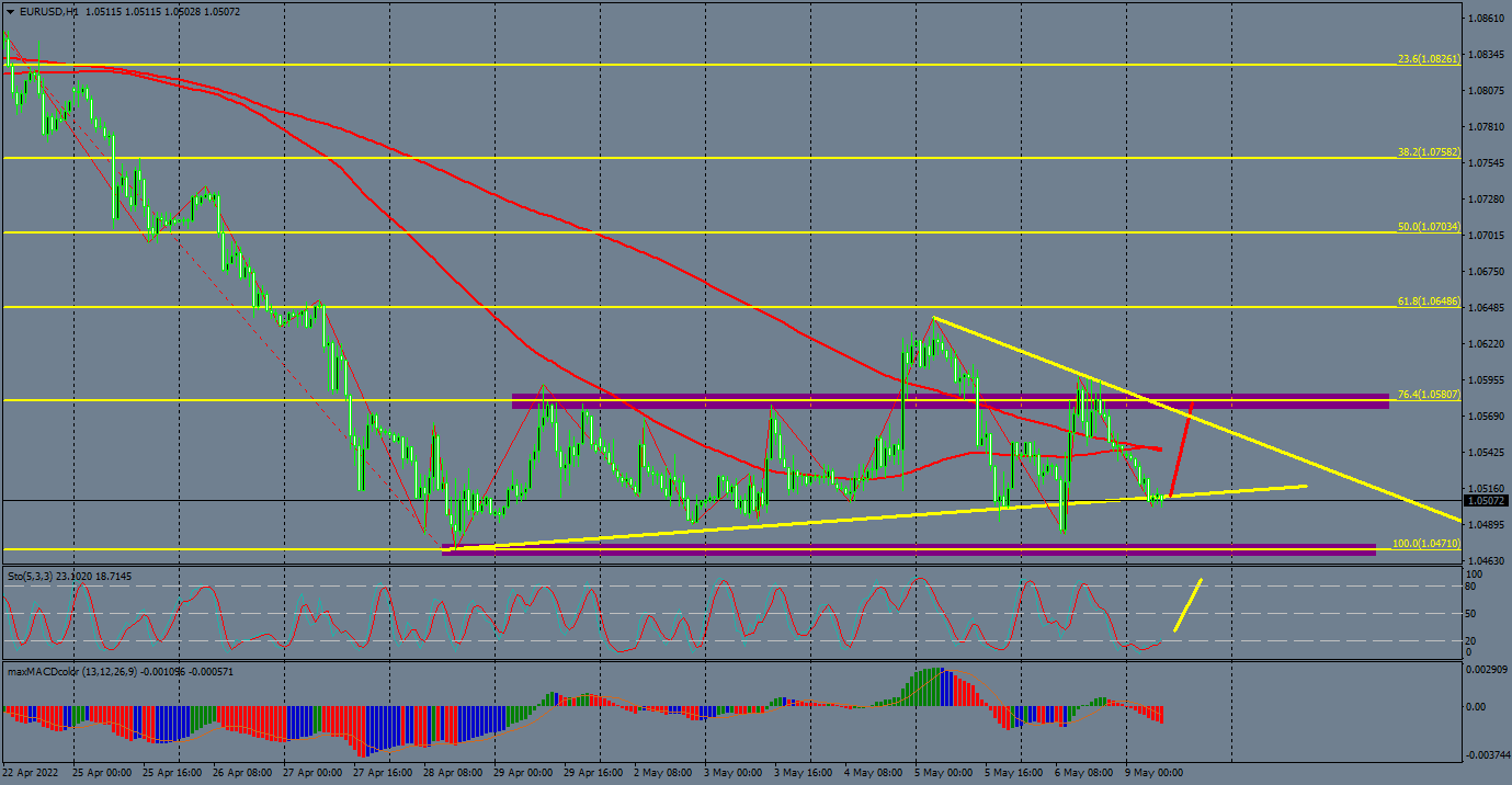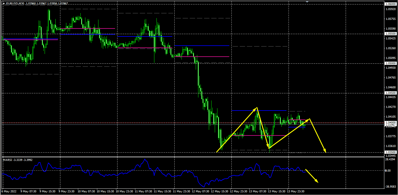 আমি বিস্তৃত পর্যবেক্ষণ করার জন্য দৈনিক সময়সীমা ব্যবহার করার চেষ্টা করি। এই বছরের শুরু থেকে eurusd পেয়ার একটি নিম্নগামী আন্দোলন বা একটি বিয়ারিশ প্রবণতা অনুভব করেছে এবং পতন এপ্রিলে 1.0472 এর স্তরে সর্বনিম্ন মূল্য স্তরে পৌঁছেছে। কিন্তু এর পরে, eurusd পেয়ারটি তার পতন চালিয়ে যেতে পারেনি এবং 2022 সালের মে মাসের শুরুতে 1.0642 লেভেল পর্যন্ত সংশোধন করা হয়েছিল। এই সপ্তাহে দামটি মোটামুটি বিস্তৃত পরিসরের সাথে একীভূত হচ্ছে বলে মনে হচ্ছে।
