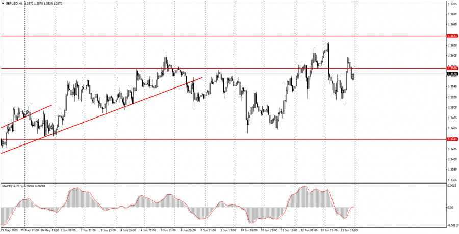 ফান্ডামেন্টাল ইভেন্টের বিশ্লেষণ: সোমবারের ফান্ডামেন্টাল ইভেন্টের মধ্যে উল্লেখযোগ্য কিছুই নেই। কোনো গুরুত্বপূর্ণ ভাষণ নির্ধারিত নেই, তবে আজ দিনের মধ্যেই গুরুত্বপূর্ণ বিবৃতি আসার সম্ভাবনা রয়েছে। ট্রাম্প ইতোমধ্যে বলেছেন যে যুক্তরাষ্ট্র ইরান হামলায় অংশ নেয়নি, কিন্তু এটি আদৌ কোনো গুরুত্ব বহন করে না, কারণ সবাই জানে যুক্তরাষ্ট্র ইসরায়েলকে সমর্থন প্রদান করে। আমাদের মতে, এখনো পর্যন্ত মার্কেটের ট্রেডারদের জন্য একমাত্র গুরুত্বপূর্ণ বিষয় হচ্ছে বাণিজ্য যুদ্ধ, এবং এর সমাধানের কোনো লক্ষণ এখনো দেখা যাচ্ছে না। এর পাশাপাশি বর্তমানে প্রাসঙ্গিক বিষয়গুলো হলো—যুক্তরাষ্ট্র ুড়ে গণবিক্ষোভ, ট্রাম্পের "অতি সুন্দর বিল", 75টি দেশের সঙ্গে বাণিজ্য চুক্তি আলোচনায় অগ্রগতি আছে কি না, নতুন শুল্ক আরোপ, বিদ্যমান শুল্ক বৃদ্ধির ঘোষণা এবং ইসরায়েল-ইরান সামরিক সংঘাত। ইসরায়েল-ইরানের সংঘাত, যেখানে যুক্তরাষ্ট্র সরাসরি জড়িত রয়েছে, এমন পরিস্থিতিতে ডলার সাময়িকভাবে কিছুটা সহায়তা পেতে পারে, তবে এই বিষয়টি শুক্রবারও ডলারকে খুব একটা সহায়তা দিতে পারেনি। উপসংহার: নতুন সপ্তাহের প্রথম দিনের ট্রেডিংয়ে আবারও উভয় কারেন্সি পেয়ারের মূল্যের অস্থিরতা দেখা যেতে পারে। আমরা এই পেয়ারগুলোর মূল্যের মুভমেন্ট নিয়ে কোনো পূর্বাভাস দিচ্ছি না, কারণ সবকিছুই উপরোক্ত বিষয়গুলোর সঙ্গে সংশ্লিষ্ট খবরের ওপর নির্ভর করবে। টেকনিক্যাল লেভেল অনুসারে ট্রেড করা যেতে পারে, তবে ঘন ঘন রিভার্সাল এবং মূল্যের তীব্র ওঠানামার জন্য প্রস্তুত থাকতে হবে।