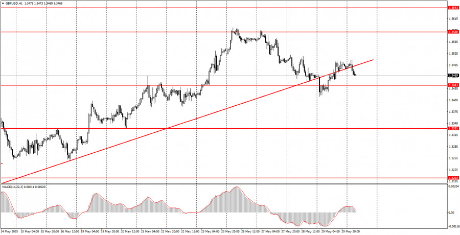 সামষ্টিক অর্থনৈতিক প্রতিবেদনের বিশ্লেষণ: শুক্রবার একাধিক সামষ্টিক অর্থনৈতিক প্রতিবেদন প্রকাশের কথা রয়েছে, তবে এর মধ্যে কোনো প্রতিবেদনকেই বিশেষ গুরুত্বপূর্ণ হিসেবে বিবেচনা করা হচ্ছে না। জার্মানিতে মে মাসের মুদ্রাস্ফীতি প্রতিবেদন প্রকাশিত হবে, যেখানে মুদ্রাস্ফীতির হার কমে ২% হওয়ার প্রত্যাশা করা হচ্ছে। ইউরোপীয় ইউনিয়নে প্রতিবার মুদ্রাস্ফীতি কমার সাথে সাথে ইউরোপীয় কেন্দ্রীয় ব্যাংকের (ECB) মুদ্রানীতির আরও নমনীয় হওয়ার সম্ভাবনা বাড়ে। তবে, এই পদক্ষেপ বর্তমানে ইউরোর ওপর কোনো প্রভাব ফেলছে না, কারণ মার্কেটের ট্রেডাররা পুরোপুরিভাবে বৈশ্বিক বাণিজ্য যুদ্ধ সংক্রান্ত ইস্যুর উপর মনোযোগ কেন্দ্রীভূত রেখেছে। এর পাশাপাশি, জার্মানিতে স্বল্প গুরুত্বপূর্ণ খুচরা বিক্রয় প্রতিবেদনও প্রকাশিত হবে। যুক্তরাষ্ট্রেও আজ তিনটি প্রতিবেদন প্রকাশিত হবে, তবে এর কোনোটিই মার্কেটে ওপর উল্লেখযোগ্য প্রভাব ফেলবে বলে মনে হচ্ছে। এই তিনটি প্রতিবেদন হলো: PCE প্রাইস ইনডেক্স, ইউনিভার্সিটি অব মিশিগান কনজ্যুমার সেন্টিমেন্ট ইনডেক্স, এবং ব্যক্তিগত আয় ও ব্যয় সংক্রান্ত প্রতিবেদন। আমরা আশা করছি না যে এই প্রতিবেদনগুলো মার্কেটে উল্লেখযোগ্য কোনো প্রতিক্রিয়া সৃষ্টি করবে। ফান্ডামেন্টাল ইভেন্টের বিশ্লেষণ: শুক্রবারের ফান্ডামেন্টাল ইভেন্টের মধ্যে ফেডারেল রিজার্ভের প্রতিনিধি—অস্টেন গুল্সবি, রাফায়েল বস্টিক এবং লরি লোগানের—বক্তব্যগ লোর কথা উল্লেখ করা যায়। তবে পূর্বে যেমনটি বলা হয়েছে, বর্তমানে কেন্দ্রীয় ব্যাংকগুলোর কর্মকর্তাদের বক্তব্য মার্কেটে প্রভাবিত করছে না, কারণ কেন্দ্রীয় ব্যাংকগুলোর নীতিমালা সংক্রান্ত অবস্থান ও দৃষ্টিভঙ্গি ইতিমধ্যেই ট্রেডারদের কাছে শতভাগ স্পষ্ট। ট্রেডাররা এখন শুধুমাত্র "ট্রাম্প ফ্যাক্টর"-কে কেন্দ্র করেই ট্রেড করছে, যা গতকালের সেশনে আবারও প্রমাণিত হয়েছে। তাছাড়া, সম্প্রতি ফেডের বহু কর্মকর্তা ইতোমধ্যে তাদের দৃষ্টিভঙ্গি প্রকাশ করেছেন। সংক্ষেপে, তারা মনে করছেন যে ট্রাম্পের শুল্কনীতির পূর্ণ প্রভাব অর্থনৈতিক সূচকে প্রতিফলিত হতে কিছুটা সময় লাগবে। আমাদের বিশ্বাস, ট্রেডাররা এখনো শুধুমাত্র বাণিজ্য যুদ্ধ নিয়ে উদ্বিগ্ন, যার উত্তেজনার মাত্রা ধীরে ধীরে কমছে ঠিকই, কিন্তু এখনো সম্পূর্ণভাবে শেষ হয়নি। যদি বেশিরভাগ দেশের সাথে বাণিজ্য চুক্তি না হয় কিংবা আলোচনাগুলো দীর্ঘায়িত হয়, তাহলে ডলারের দরপতন অব্যাহত থাকতে পারে। এমনকি ট্রাম্প নতুন করে শুল্ক আরোপ না করলেও, মার্কেটের ট্রেডারদের মধ্যে ট্রাম্প এবং তার গৃহীত নীতিমালার প্রতি চরম নেতিবাচক মনোভাবের কারণে ডলার দরপতনের শিকার হতে পারে। আন্তর্জাতিক বাণিজ্য আদালত ট্রাম্পের শুল্ক বাতিল