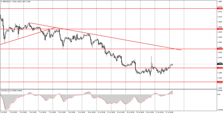 সামষ্টিক অর্থনৈতিক প্রতিবেদনের বিশ্লেষণ: শুক্রবার একাধিক সামষ্টিক অর্থনৈতিক প্রতিবেদন প্রকাশিত হওয়ার কথা থাকলেও, এর মধ্যে কোনোটিই তেমন গুরুত্বপূর্ণ নয়। কেবলমাত্র যুক্তরাষ্ট্রের ইউনিভার্সিটি অফ মিশিগান থেকে কনজিউমার সেন্টিমেন্ট ইনডেক্স বা ভোক্তা মনোভাব সূচক কিছুটা দৃষ্টি পাওয়ার মতো, যা সন্ধ্যায় প্রকাশিত হবে। দিনের বাকি সময়ে ট্রেডাররা কেবল ডোনাল্ড ট্রাম্পের বিবৃতির উপর নির্ভর করতে পারে, যিনি হয়তো নতুন করে শুল্ক আরোপ বা জেরোম পাওয়েলকে পুনরায় বরখাস্ত করার ঘোষণা দিয়ে আরেক দফা ঝড় তুলতে পারেন। ইউরোজোন, জার্মানি ও যুক্তরাজ্যের অর্থনৈতিক ক্যালেন্ডারে একেবারেই কোনো প্রতিবেদন প্রকাশ হওয়ার কথা নেই। ফান্ডামেন্টাল ইভেন্টের বিশ্লেষণ: শুক্রবারের ফান্ডমেন্টাল ইভেন্টের মধ্যে উল্লেখযোগ্য কিছু নেই, কারণ ফেডারেল রিজার্ভ, ইউরোপীয় সেন্ট্রাল ব্যাংক বা ব্যাংক অফ ইংল্যান্ডের কোনো কর্মকর্তার ভাষণ নির্ধারিত নেই। তবে, আমরা অনেকবার বলেছি যে, তাদের বক্তব্য বর্তমানে মার্কেটে খুব একটা প্রভাব ফেলছে না। তিনটি কেন্দ্রীয় ব্যাংকই সুস্পষ্ট মুদ্রানীতি অনুসরণ করছে এবং ট্রেডাররা ইতোমধ্যেই তা বুঝে ফেলেছে। এখনও বিনিয়োগকারীদের জন্য প্রধান উদ্বেগের বিষয় বাণিজ্যযুদ্ধ, যার সমাধানের সুস্পষ্ট কোনো ইঙ্গিত পাওয়া যায়নি। পরিস্থিতি এখনো উত্তেজনাপূর্ণ, কারণ ট্রাম্প এখন পর্যন্ত মাত্র তিনটি বাণিজ্য চুক্তি সম্পন্ন করতে পেরেছেন, যার একটি নিয়ে সন্দেহও রয়েছে, আর সময় দ্রুত ফুরিয়ে আসছে। গত দুই সপ্তাহে মার্কিন প্রেসিডেন্ট ওয়াশিংটনের সঙ্গে আলোচনায় অনিচ্ছুক দেশগুলোর ওপর নতুন করে শুল্ক আরোপের সিদ্ধান্ত নিয়েছেন, পাশাপাশি তামা, ওষুধ ও সেমিকন্ডাক্টরের আমদানিতেও শুল্ক বাড়িয়েছেন। এই নিরুৎসাহজনক মৌলিক প্রেক্ষাপট সত্ত্বেও, গত তিন সপ্তাহে মার্কিন ডলার সক্রিয়ভাবে শক্তিশালী হয়েছে, যা মৌলিক পরিস্থিতির সাথে সম্পূর্ণ সাংঘর্ষিক। আমরা এখন হায়ার টাইমফ্রেমে উভয় কারেন্সি পেয়ারের মূল্যের উর্ধ্বমুখী প্রবণতার নতুন তরঙ্গ শুরু হওয়ার জন্য প্রস্তুতি নিচ্ছি।