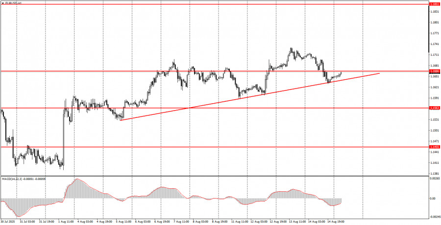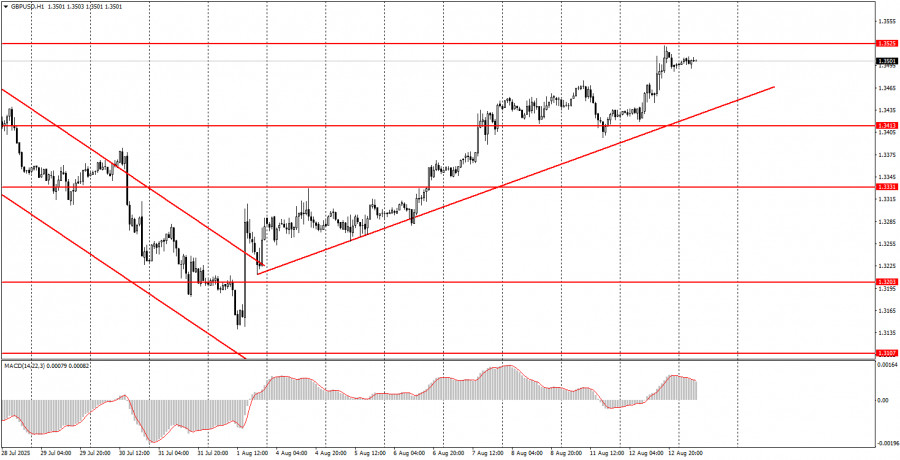 উপসংহার: সপ্তাহের শেষ দিনের ট্রেডিংয়ে, উভয় কারেন্সি পেয়ারের মূল্যই পুনরায় ঊর্ধ্বমুখী হতে পারে। গতকাল উভয় পেয়ারের মূল্যেরই কারেকশন হয়েছে, তবে গুরুত্বপূর্ণ লেভেল বা সাপোর্ট লাইনে এসে মুভমেন্ট থেমেছে। আজ কেবল দিনের দ্বিতীয়ার্ধে প্রতিবেদন প্রকাশিত হবে। মার্কিন অর্থনৈতিক প্রতিবেদনের দুর্বল ফলাফল ডলার বিক্রির নতুন কারণ হবে। আলাস্কার আলোচনায় ইতিবাচক ফলাফল আসলে সেটিও ডলার বিক্রির আরেকটি কারণ হতে পারে। ঊর্ধ্বমুখী প্রবণতা বজায় রয়েছে, এবং যতক্ষণ তা অব্যাহত থাকবে, ততক্ষণ আমরা এই পেয়ার বিক্রির কোনো কারণ দেখছি না।