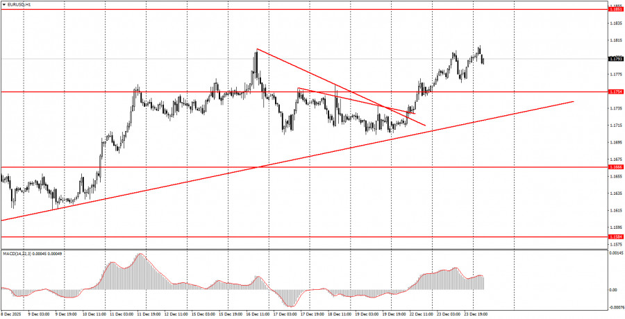 সামষ্টিক অর্থনৈতিক প্রতিবেদনের পর্যালোচনা: বুধবার কোনো গুরুত্বপূর্ণ সামষ্টিক অর্থনৈতিক প্রতিবেদন প্রকাশিত হবে না, শুধুমাত্র একটি স্বল্প গুরুত্বপূর্ণ সূচক প্রকাশের কথা রয়েছে—সেটি হচ্ছে মার্কিন যুক্তরাষ্ট্রের বেকারভাতা আবেদনসংক্রান্ত প্রতিবেদন। আজ ফরেক্স মার্কেটে সন্ধ্যার দিকে ট্রেডিং সেশন শেষ হয়ে যাবে। আগামীকাল ক্রিসমাস, ফলে মার্কেট সম্পূর্ণরূপে বন্ধ থাকবে। টেকনিক্যাল দৃষ্টিকোণ থেকে, থিন মার্কেটে আজ পুরো দিনজুড়ে উভয় কারেন্সি পেয়ারের মূল্যের বুলিশ প্রবণতা বজায় থাকার সম্ভাবনা রয়েছে, কারণ অধিকাংশ টেকনিক্যাল ও মৌলিক সূচক এখনো ডলারের দরপতনের সম্ভাবনা নির্দেশ করছে। ফান্ডামেন্টাল ইভেন্টের বিশ্লেষণ: বুধবার কোনো ফান্ডামেন্টাল ইভেন্টও নির্ধারিত নেই। সামগ্রিকভাবে, মার্কেটে মূলত ফেডারেল রিজার্ভের অবস্থানকে ঘিরে প্রশ্ন রয়েছে। ফেডের সর্বশেষ বৈঠকটি সম্প্রতি অনুষ্ঠিত হলেও, এর পরে মার্কিন যুক্তরাষ্ট্রে শ্রমবাজার, বেকারত্ব এবং মুদ্রাস্ফীতি সংক্রান্ত প্রতিবেদন প্রকাশিত হয়েছে—যেগুলোর ফলাফলের ফেডের মুদ্রানীতির ওপর ব্যাপক প্রভাব বিস্তার করে থাকে। তাই, জেরোম পাওয়েল এবং ফেডারেল ওপেন মার্কেট কমিটির (FOMC) অন্যান্য সদস্যদের সর্বশেষ দৃষ্টিভঙ্গি সম্পর্কে আমরা এখনো জানি না। তবে, আগেই উল্লেখ করা হয়েছে, মঙ্গলবার ফেড কর্মকর্তাদের কোনো বক্তব্য নির্ধারিত ছিল না। ছুটির মৌসুম এগিয়ে আসায় অনেক রাজনীতিবিদ ও অর্থনৈতিক নীতিনির্ধারক ছুটিতে রয়েছেন। উপসংহার: চলতি সপ্তাহের তৃতীয় দিনের ট্রেডিংয়ে, উভয় কারেন্সি পেয়ারের মূল্যের ঊর্ধ্বমুখী মুভমেন্ট অব্যাহত থাকতে পারে। বর্তমানে স্বল্পমেয়াদে উভয় পেয়ারের মূল্যের বুলিশ প্রবণতা বিরাজ করছে, এবং মার্কেটের ট্রেডারদের বড় একটি অংশ এখনও সক্রিয়ভাবে ট্রেডিং ও ক্রয়-বিক্রয়ে আগ্রহ দেখাচ্ছে। আজ EUR/USD পেয়ার 1.1808 লেভেল থেকে ট্রেড করবে, যেখানে GBP/USD পেয়ার 1.3529–1.3543 এরিয়া থেকে ট্রেড করবে।