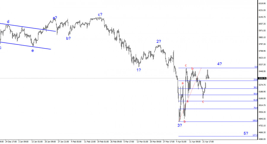 24-ঘণ্টার চার্টে #SPX এর ওয়েভ প্যাটার্ন মোটামুটি স্পষ্ট। বৈশ্বিক ফাইভ-ওয়েভ স্ট্রাকচারটি এত বিস্তৃত যে এটি টার্মিনাল স্ক্রিনের লোয়ার স্কেলেও পুরোপুরি ধরছে না। সহজ কথায়, যুক্তরাষ্ট্রের স্টক সূচকগুলো দীর্ঘ সময় ধরে ঊর্ধ্বমুখী ছিল—কিন্তু আমরা জানি যে প্রবণতা সর্বদা পরিবর্তিত হয়। এই মুহূর্তে, আপওয়ার্ড ট্রেন্ড সেগমেন্ট সম্পন্ন হয়েছে বলে মনে হচ্ছে। ইন্সট্রুমেন্টটি চারবার 6,093 লেভেল ব্রেকের চেষ্টা করেছে, যা ওয়েভ 4 থেকে 200.0% ফিবোনাচ্চি লেভেলের সাথে সঙ্গতিপূর্ণ, তবে তা সফল হয়নি। আমার দৃষ্টিতে, আমরা শিগগিরই একটি কারেকটিভ ওয়েভ সিরিজের ধারাবাহিকতা দেখতে পারি। মার্কিন স্টক মার্কেট দীর্ঘদিন ধরে অতিরিক্ত অস্থিতিশীল ছিল, এবং ট্রাম্প একটি চেইন রিঅ্যাকশন শুরু করেছেন। 4-ঘণ্টার চার্টে (উপরের চিত্র), আমরা একটি নতুন ডাউনওয়ার্ড ট্রেন্ড সেগমেন্টের বিকাশ দেখতে পাচ্ছি, যা বেশ বিস্তৃত হতে পারে। স্ট্রাকচারে এখনো পঞ্চম ওয়েভ অনুপস্থিত, তাই আমি মনে করি S&P 500 সূচকের দরপতন এখনো শেষ হয়নি। এটি মনে রাখা জরুরি যে ট্রাম্প নতুন করে কোনো শুল্ক আরোপ করলে—অথবা যুক্তরাষ্ট্রের বিরুদ্ধে পাল্টা শুল্ক আরোপিত হলে—মার্কিন স্টক মার্কেটে নতুন করে বিক্রির প্রবণতা আসতে পারে। বর্তমানে, অনুমানকৃত ওয়েভ 4 এখনো গঠনের মধ্যে রয়েছে এবং এটি অভ্যন্তরীণভাবে বেশ জটিল হতে পারে। #SPX তীব্রভাবে পুনরুদ্ধার করেছে, তবে নিম্নমুখী প্রবণতার গঠন এখনো চলছে। আমরা এখন অনুমানকৃত ওয়েভ 4-এর মধ্যে একটি জটিল কারেকটিভ স্ট্রাকচারের গঠন প্রত্যক্ষ করছি। আমি এই মুহূর্তে প্রবণতার পরিবর্তনের কোনো লক্ষণ দেখছি না। S&P 500 সূচকের সাম্প্রতিক পুনরুদ্ধার মূলত ট্রাম্পের বাণিজ্য যুদ্ধ সম্পর্কিত অবস্থান নমনীয় করার ফলাফল। মনে করিয়ে দিই যে কয়েক সপ্তাহ আগে ট্রাম্প 75টি দেশের আমদানিকৃত পণ্যের শুল্কের ওপর 90 দিনের ছাড়ের ঘোষণা দিয়েছিলেন। চলতি সপ্তাহের শুরুতে, তিনি চীনের উপর আরোপিত শুল্কের বোঝা কমানোর কথা বলেছেন। এটি এখনও স্পষ্ট নয় কতটা কমানো হবে, কখন বা কী শর্তে হবে, তবে চীন এবং অন্যান্য দেশের প্রতি অবস্থান স্পষ্টভাবেই নমনীয় হয়েছে। মার্কেটের ট্রেডাররা বুঝতে পেরেছে যে বাণিজ্য যুদ্ধের ব্যাপক উত্তেজনাকর পরিস্থিতি এড়ানো যেতে পারে, তাই মার্কিন যুক্তরাষ্ট্রে স্টক বিক্রির প্রবণতা বন্ধ হয়েছে। তবে বাণিজ্য উত্তেজনার পূর্ণ প্রশমন নিয়ে কথা বলার সময় এখনও আসেনি, কারণ ট্রাম্প আরোপিত সকল শুল্ক প্রত্যাহার করার পরিকল্পনা করছেন না। আমি সন্দিহান যে সব দেশই যুক্তরাষ্ট্রের সাথে বাণিজ্য চুক্তি করতে পারবে কিনা। আমি বিশেষভাবে ইউরোপীয় ইউনিয়ন এবং চীনের পরিস্থিতি নিয়ে উদ্বিগ্ন, যেখানে আলোচনা করে কোনো চুক্তিতে পৌঁছানোর সম্ভাব