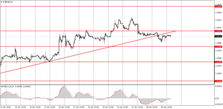 ফান্ডামেন্টাল ইভেন্টের বিশ্লেষণ: মঙ্গলবারের প্রধান ফান্ডামেন্টাল ইভেন্ট হিসেবে ইউরোপীয় কেন্দ্রীয় ব্যাংকের প্রেসিডেন্ট ক্রিস্টিন লাগার্ডের আরেকটি বক্তৃতা অনুষ্ঠিত হবে। তবে, লাগার্ড গত সপ্তাহে বুধবার, শুক্রবার এবং গতকাল সোমবারও বক্তৃতা দিয়েছেন, যেখানে কোনো উল্লেখযোগ্য নতুন তথ্য পাওয়া যায়নি। বৃহস্পতিবার ইসিবির বছরের প্রথম বৈঠক অনুষ্ঠিত হবে, এবং মার্কেটের ট্রেডাররা সম্পূর্ণরূপে সুদের হার 0.25% হ্রাসের আশা করছে। এর বিপরীতে, বুধবার অনুষ্ঠিতব্য FOMC-এর বৈঠকে সুদের হার কমানোর প্রত্যাশা নেই। এর ফলে, মৌলিক দৃষ্টিকোণ থেকে ইউরো মার্কিন ডলারের তুলনায় অসুবিধাজনক অবস্থানে রয়েছে। ইউরোর মূল্যের বর্তমান ঊর্ধ্বমুখী প্রবণতা শুধুমাত্র একটি টেকনিক্যাল কারেকশন বলেই মনে হচ্ছে এবং এর বেশি কিছু নয়। উপসংহার: সপ্তাহের দ্বিতীয় দিনের ট্রেডিংয়ে, সম্ভবত উভয় কারেন্সি পেয়ারের মূল্যের 80% মুভমেন্ট টেকনিক্যাল সিগন্যালের উপর ভিত্তি করে পরিচালিত হবে। আমরা মনে করি, মার্কিন ডলারের মূল্যের পুনরুদ্ধার অব্যাহত থাকতে পারে, কারণ গত তিন সপ্তাহে ইউরো এবং পাউন্ডের মূল্য খুব দ্রুত বৃদ্ধি পেয়েছে, বিশেষত এই কারণে যে বর্তমান মুভমেন্ট কারেকশনের ভিত্তিতে হচ্ছে। যদিও ডোনাল্ড ট্রাম্প নিঃসন্দেহে ট্রেডার এবং বিনিয়োগকারীদের ডলার এবং মার্কিন শেয়ার কেনার ক্ষেত্রে অনীহা বাড়িয়েছেন, তবে মার্কিন ডলার শুধুমাত্র ট্রাম্পের বৈশ্বিক নীতির প্রভাবে চাপের মধ্যে থাকতে পারে না।