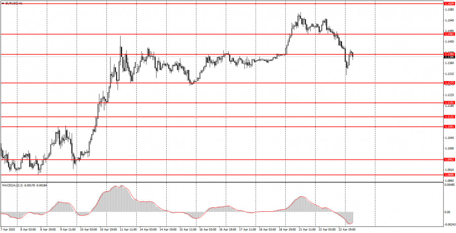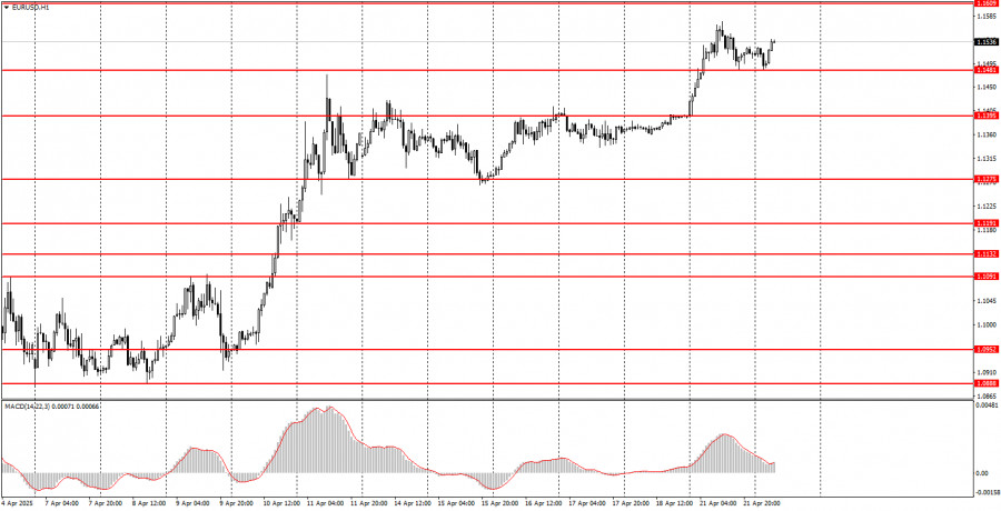 সামষ্টিক অর্থনৈতিক প্রতিবেদনের বিশ্লেষণ: বুধবার উল্লেখযোগ্য সংখ্যক সামষ্টিক অর্থনৈতিক প্রতিবেদন প্রকাশিত হবে। এর সবকটাই পরিষেবা এবং উৎপাদন খাতে এপ্রিল মাসের পারচেসিং ম্যানেজারস ইনডেক্স (PMI) সংক্রান্ত প্রতিবেদন। এই সূচকগুলো ইউরোপের অনেক দেশ, ইউরোজোন, যুক্তরাজ্য এবং যুক্তরাষ্ট্রে প্রকাশিত হবে। ইউরোপে ব্যবসায়িক কার্যকলাপে মন্থরতার পূর্বাভাস দেয়া হয়েছে, যা সম্ভবত বুলিশ ট্রেডারদের সন্তুষ্ট করবে না। একই সময়ে, ডোনাল্ড ট্রাম্প এখনও বাজার পরিস্থিতিতে আধিপত্য বিস্তার করে আছেন। সামষ্টিক অর্থনৈতিক প্রতিবেদনের ফলাফল সাধারণত মূল্যের মুভমেন্টে খুব বেশি প্রতিফলিত হয় না এবং ট্রেডারদের মনোভাবেও তা উল্লেখযোগ্যভাবে প্রভাব ফেলতে পারে না। ইউরোপ এবং যুক্তরাজ্যে PMI সূচকগুলো কমে গেলে ইউরো এবং পাউন্ডের দরপতন অব্যাহত থাকতে পারে। ফান্ডামেন্টাল ইভেন্টের বিশ্লেষণ: আগের মতোই, ট্রাম্পের বাণিজ্য যুদ্ধ ছাড়া অন্য কোনো ফান্ডামেন্টাল ইভেন্ট নিয়ে আলোচনা করার কোনো মানে নেই। ট্রাম্প যদি নতুন শুল্ক আরোপ করে অথবা বিদ্যমান শুল্ক বৃদ্ধি করে, তাহলে অনির্দিষ্টকাল ধরে ডলারের দরপতন চলমান থাকতে পারে। আমরা ট্রেডারদের পরামর্শ দেব যে বিশ্বের বৃহত্তম দেশ এবং অর্থনৈতিক জোটগুলোর শীর্ষ কর্মকর্তাদের শুল্ক সংক্রান্ত বক্তব্যের দিকে ঘনিষ্ঠভাবে নজর রাখুন। বাণিজ্য যুদ্ধে যেকোনো ধরনের উত্তেজনা বৃদ্ধির ঘটনা নতুন করে ডলারের দরপতনের কারণ হতে পারে। আবার, যেকোনো ধরনের উত্তেজনা প্রশমনের সংকেত ডলারকে শক্তিশালী করতে পারে। তবে এখন পর্যন্ত কোনো উত্তেজনা প্রশমনের লক্ষণ দেখা যায়নি, এবং নতুন কোনো ঘটনা ছাড়াই ডলারের দরপতন অব্যাহত থাকতে পারে। গতকাল ট্রাম্প ঘোষণা দিয়েছেন যে তিনি চীনের ওপর আরোপিত 145% শুল্ক বহাল রাখার পরিকল্পনা করছেন না, যা সব মার্কেটেই স্বস্তির আভা দেখা গেছে। বিটকয়েন, মার্কিন ডলার, এবং মার্কিন স্টক সূচকগুলো তাৎক্ষণিকভাবে ঊর্ধ্বমুখী হয়েছে। তবে ট্রাম্প ব্যাখ্যা করেননি যে কখন বা কী শর্তে এই শুল্ক হ্রাস করা হবে। এবং যদি চীনের সাথে বাণিজ্য চুক্তি সম্পাদিত না হয়, তাহলে হোয়াইট হাউজ সম্ভবত এই সংঘাত নিরসনের পথে এগোবে না। তবে, ট্রাম্পের ক্ষেত্রে, কোনকিছুই অসম্ভব নয়। উপসংহার: সপ্তাহের তৃতীয় দিনের ট্রেডিংয়ে যেকোনো দিকে উভয় কারেন্সি পেয়ারের মূল্যের মুভমেন্ট দেখা যেতে পারে। মঙ্গলবার আমরা মার্কিন ডলারের ঊর্ধ্বমুখী প্রবণতা দেখেছি, যা বুধবারের প্রথমার্ধেও অব্যাহত থাকতে পারে, কারণ মার্কেটের ট্রেডাররা এখনো ট্রাম্পের সাম্প্রতিক বক্তব্য পুরোপুরি মূল্যায়ন করেনি। এছাড়াও, এপ্রিল মাসের ব্যবসায়িক কার্যকলাপ সূচকগুলোর ফলাফল থেকে ইউরো এবং পাউন্ডের ওপর চাপ সৃষ্টি প