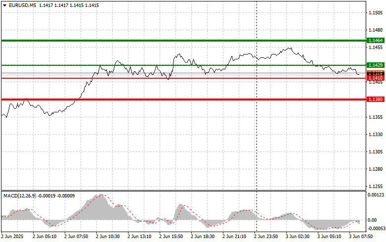 বাই সিগন্যাল পরিকল্পনা #1: আজ যখন ইউরোর মূল্য 1.1468-এর লেভেলে বৃদ্ধির লক্ষ্যে 1.1408-এর (চার্টে সবুজ লাইন দ্বারা চিহ্নিত) লেভেলে পৌঁছাবে, তখন আপনি ইউরো কিনতে পারেন। মূল্য 1.1468-এর লেভেলে গেলে, আমি লং পজিশন ক্লোজ করার পরিকল্পনা করছি এবং এন্ট্রি পয়েন্ট থেকে বিপরীত দিকে 30-35 পিপসের মুভমেন্টের উপর নির্ভর করে ইউরোর শর্ট পজিশন ওপেন করব। আজ শুধুমাত্র আসন্ন প্রতিবেদনের ইতিবাচক ফলাফল প্রকাশিত হলে ইউরোর দর বৃদ্ধির প্রত্যাশা করা যেতে পারে। গুরুত্বপূর্ণ! এই পেয়ার কেনার আগে, নিশ্চিত করুন যে MACD সূচকটি শূন্যের উপরে রয়েছে এবং সেখান থেকে উপরের দিকে উঠতে শুরু করেছে। পরিকল্পনা #2: আজ MACD সূচকটি ওভারসোল্ড জোনে থাকাকালীন সময়ে 1.1352-এর লেভেলে মূল্যের পরপর দুটি টেস্টের ক্ষেত্রে আমি ইউরো কেনার পরিকল্পনা করছি। এটি এই পেয়ারের মূল্যের নিম্নমুখী হওয়ার সম্ভাবনাকে সীমিত করবে এবং বাজারদরকে বিপরীতমুখী করে ঊর্ধ্বমুখী করবে। আমরা 1.1408 এবং 1.1468-এর বিপরীতমুখী লেভেলের দিকে এই পেয়ারের দর বৃদ্ধির প্রত্যাশা করতে পারি।