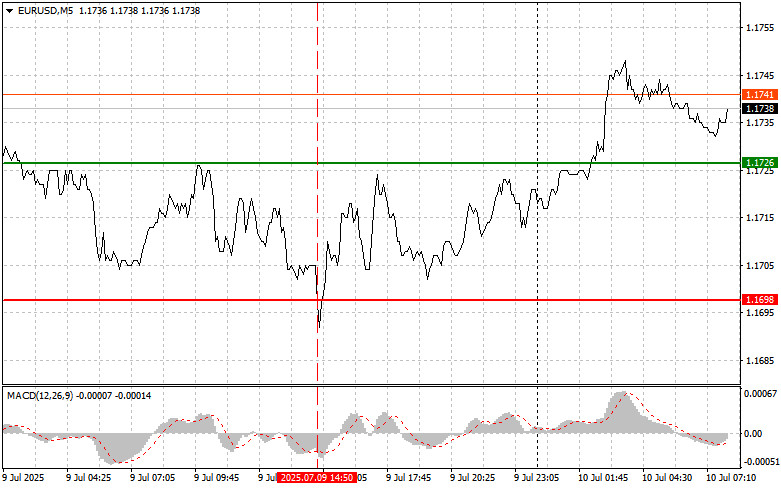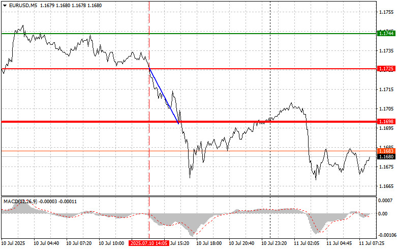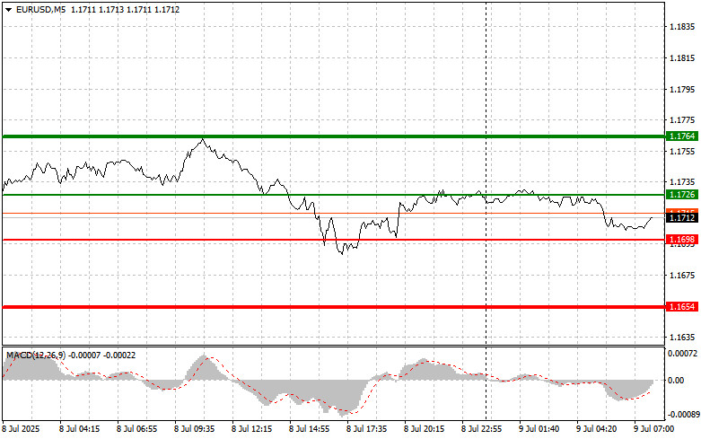 ইউরোর ট্রেডিংয়ের বিশ্লেষণ এবং টিপস যখন MACD সূচকটি সবেমাত্র জিরো লাইনের নিচের দিকে যাওয়া শুরু করেছিল তখন এই পেয়ারের মূল্য 1.1725-এর লেভেল টেস্ট করেছিল। যা ইউরোর শর্ট এন্ট্রির বৈধতা নিশ্চিত করে এবং 40 পয়েন্টেরও বেশি দরপতনের দিকে নিয়ে যায়। যেসব দেশ এখনো যুক্তরাষ্ট্রের সাথে বাণিজ্য চুক্তিতে স্বাক্ষর করেনি, তাদের উপর অতিরিক্ত 35% শুল্ক আরোপের হুমকি মার্কিন ডলারকে সমর্থন দিয়েছে এবং ঝুঁকিপূর্ণ অ্যাসেটগুলো, যার মধ্যে ইউরোও রয়েছে, তীব্রভাবে দরপতনের শিকার হয়েছে। আজ, ইউরোজোনজুড়ে গুরুত্বপূর্ণ কোনো প্রতিবেদন প্রকাশের কথা না থাকলেও, জার্মানি ও ফ্রান্সের প্রতিবেদনের দিকে দৃষ্টি থাকবে। বিনিয়োগকারীরা জার্মানির পাইকারি মূল্য সূচক (WPI) এবং ফ্রান্সের ভোক্তা মূল্য সূচক (CPI) সংক্রান্ত প্রতিবেদনের দিকে ঘনিষ্ঠভাবে লক্ষ্য রাখছে, কারণ এই দুই প্রতিবেদনের ফলাফল ইউরোজোনের বৃহত্তম অর্থনীতিগুলোর ভবিষ্যৎ মুদ্রাস্ফীতির প্রবণতা সম্পর্কে ধারণা দেয়। ঐতিহ্যগতভাবে, জার্মানির পাইকারি মূল্য সূচককে মুদ্রাস্ফীতির পূর্বাভাসে একটি নেতৃস্থানীয় সূচক হিসেবে দেখা হয়, কারণ পাইকারি মূল্য সূচক বৃদ্ধি পেলে সেটি শেষ পর্যন্ত ভোক্তা মূল্য সূচকেও প্রতিফলিত হতে পারে। বিপরীতে, পাইকারি মূল্য সূচকের পতন মুদ্রাস্ফীতির চাপ দুর্বল হওয়ার ইঙ্গিত দিতে পারে এবং ভোক্তা মূল্য সূচকের সম্ভাব্য হ্রাস নির্দেশ করতে পারে। পরবর্তীতে, ফ্রান্সের ভোক্তা মূল্য সূচক বা CPI প্রকাশিত হবে। এই সূচকটি পরিবারের দ্বারা কেনা পণ্য ও সেবার দামের পরিবর্তন প্রতিফলিত করে। CPI বৃদ্ধি পেলে সেটি ইসিবি সুদের হারে সতর্ক অবস্থান বজায় রাখতে প্ররোচিত করতে পারে, অন্যদিকে CPI হ্রাস পেলে কেন্দ্রীয় ব্যাংক বর্তমান নীতি বজায় রাখা বা তা আরও শিথিল করার দিকে এগোতে পারে। দৈনিক কৌশলের ক্ষেত্রে, আমি মূলত বাই সিগন্যালের পরিকল্পনা #1 এবং #2 বাস্তবায়নের উপর নির্ভর করব। বাই সিগন্যাল