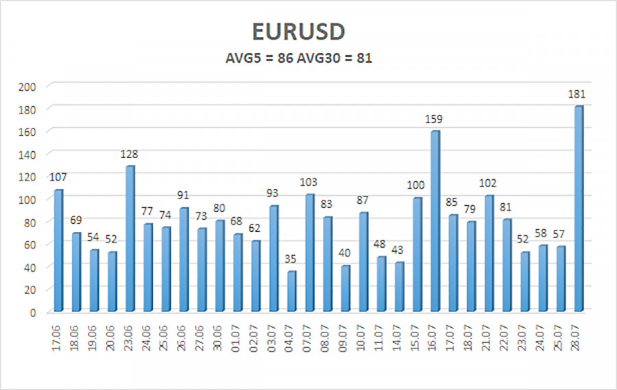 কেন ইউরোর দরপতন ঘটল? এটাও ব্যাখ্যার দাবি রাখে। ইউরোর দরপতন ঘটেছে শুধু এই কারণে যে, ফন ডার লায়েনের নেতৃত্বে যে চুক্তি স্বাক্ষরিত হয়েছে তা ইউরোপীয় ইউনিয়নের জন্য অত্যন্ত অমার্জনীয়। মূলত এই চুক্তিতে শুধু শুল্কই আরোপ করা হয়নি, বরং ইউরোপীয় ইউনিয়নকে যুক্তরাষ্ট্রে বিশাল অঙ্কের ব্যয় ও বিনিয়োগে বাধ্য করা হয়েছে। এর ফলে মার্কিন ডলার শক্তিশালী হয়েছে — কিন্তু এর অর্থ কি মধ্যমেয়াদে ডলারের জন্য ইতিবাচক ভবিষ্যৎ অপেক্ষা করছে? ধরে নেই, ট্রাম্প জাপান ও ইউরোপীয় ইউনিয়নের মতো সকল প্রধান বাণিজ্য অংশীদারদের সঙ্গে অনুরূপ চুক্তি স্বাক্ষর করতে সক্ষম হবেন। তাহলে এর মানে দাঁড়াবে যে, যুক্তরাষ্ট্র আগের মতোই বৈশ্বিক বাণিজ্য কার্যক্রম চালিয়ে যাবে — তবে অনেক বেশি অনুকূল শর্তে। এক্ষেত্রে, 2025 সালে ডলার বিক্রির যে প্রবণতা দেখা গিয়েছিল তা নিছকই একটি ভ্রান্ত ধারণা বলে প্রমাণিত হবে। এই দৃষ্টিকোণ থেকে, ডলারের মূল্য দরপতনের সূচনালগ্ন অর্থাৎ 1.03 লেভেলে ফিরে যাওয়ার কথা। কিন্তু এটি কি বাস্তবসম্মত? আমাদের মতে, তা সম্ভব নয়। ট্রাম্প সত্যিই একচেটিয়াভাবে সুবিধাজনক বাণিজ্য চুক্তি স্বাক্ষর করেছেন, তবে যুক্তরাষ্ট্রে ইউরোপীয় পণ্যের দাম বেড়ে যাবে, যার ফলে চাহিদা কমবে। ফলস্বরূপ, বাণিজ্যের পরিমাণ কমে যাবে এবং মূল্য বাড়বে। ট্রাম্প মুদ্রাস্ফীতি নিয়ে ভাবেন না এবং "সস্তা" ডলারের ওপর নির্ভর করেন। তাই, মার্কিন প্রেসিডেন্ট ইউরো-ডলারের দর প্যারিটি লেভেলের কাছাকাছি পৌঁছেছে ডলারের আবার দর বৃদ্ধি পেতে দেবেন — এমনটি বলা কঠিন। তদুপরি, শুধু বাণিজ্য যুদ্ধের জন্যই নয়, ট্রাম্পের নেতৃত্বশৈলীর কারণেও ডলার দুর্বল হয়েছে। অনেক বিনিয়োগকারী এবং কেন্দ্রীয় ব্যাংক তার দেশ পরিচালনার ধরনে অসন্তুষ্ট — এবং এই পরিস্থিতিতে কোনো পরিবর্তন আসেনি। তবে এখন আমরা স্বল্পমেয়াদি দৃষ্টিকোণ থেকে মার্কিন ডলারের উল্লেখযোগ্য শক্তিশালী হওয়ার সম্ভাবনাকে উড়িয়ে দিচ্ছি না। গত পাঁচ দিনের ট্রেডিংয়ে (২৯ জুলাই পর্যন্ত) EUR/USD কারেন্সি পেয়ারের মূল্যের গড় ভোলাটিলিটি ছিল 86 পিপস, যা "মধ্যম" পর্যায়ের অস্থিরতা হিসেবে বিবেচিত হয়। আমরা প্রত্যাশা করছি যে, মঙ্গলবার এই পেয়ারের মূল্য 1.1507 এবং 1.1679 লেভেলের মধ্যে মুভমেন্ট প্রদর্শন করবে। দীর্ঘমেয়াদি লিনিয়ার রিগ্রেশন চ্যানেল এখনো ঊর্ধ্বমুখী অবস্থানে রয়েছে, যা চলমান ঊর্ধ্বমুখী প্রবণতার ইঙ্গিত দেয়। CCI ইনডিকেটর আবারো ওভারসোল্ড জোনে প্রবেশ করেছে, যা সম্ভাব্যভাবে ঊর্ধ্বমুখী প্রবণতা পুনরায় শুরু হওয়ার সংকেত হতে পারে।