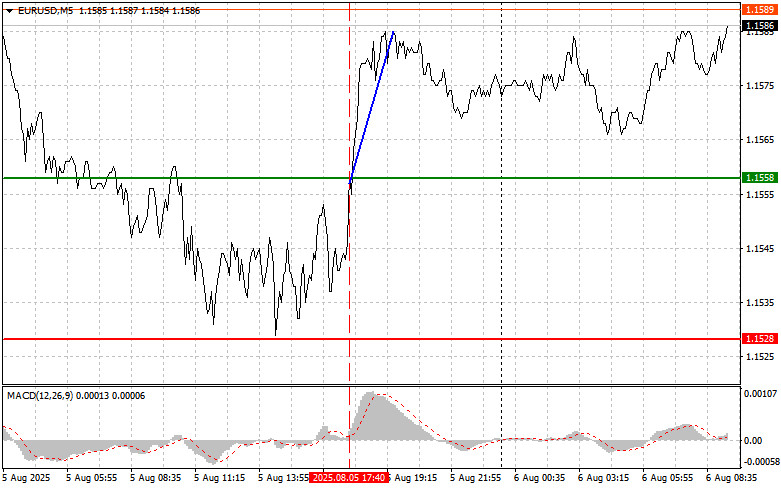 ইউরোর ট্রেডিংয়ের বিশ্লেষণ এবং টিপস যখন MACD সূচকটি শূন্যের উপরের দিকে উঠতে শুরু করেছিল তখন এই পেয়ারের মূল্য 1.1558-এর লেভেল টেস্ট করে, যা ইউরো কেনার জন্য একটি সঠিক এন্ট্রি পয়েন্ট নিশ্চিত করেছিল। এর ফলস্বরূপ, এই পেয়ারের মূল্য 25 পয়েন্টেরও বেশি বেড়ে যায়। ইনস্টিটিউট ফর সাপ্লাই ম্যানেজমেন্ট কর্তৃক প্রকাশিত ISM পরিষেবা সংক্রান্ত PMI-এর অপ্রত্যাশিত পতনই ছিল সেই কারণ, যা কারেন্সি মার্কেটে ঢেউ তুলেছিল। 50.1 পয়েন্টের ফলাফল বিশ্লেষকদের পূর্বাভাসের তুলনায় কম ছিল, যা মার্কিন অর্থনীতির একটি গুরুত্বপূর্ণ খাতে গতিশীলতা কমে যাওয়ার ইঙ্গিত দেয়। এর ফলে ফেডারেল রিজার্ভের আর্থিক নীতিমালার সম্ভাব্য নমনীয়করণ নিয়ে জল্পনা আরও বেড়ে যায়। তবে, মার্কিন বাণিজ্য ঘাটতি সংক্রান্ত প্রতিবেদনের ইতিবাচক ফলাফলের কারণে ডলারের ওপর অতিরিক্ত চাপ প্রশমিত হয়েছে, যেখানে ঘাটতি সামান্য পরিমাণে হ্রাস পেয়েছে। এটি ইঙ্গিত দেয় যে, ডোনাল্ড ট্রাম্প কর্তৃক আরোপিত শুল্ক এখনও কার্যকর রয়েছে। আজ সকালের দিকে, জার্মানির ইন্ডাস্ট্রিয়াল বা শিল্প আদেশ এবং ইউরোজোনের রিটেইল সেলস বা খুচরা বিক্রয় পরিবর্তনের তথ্য প্রকাশিত হওয়ার কথা রয়েছে। এই সূচকগুলো ইউরোপীয় অর্থনৈতিক পরিস্থিতি মূল্যায়নে গুরুত্বপূর্ণ এবং এগুলো ইউরোপীয় কেন্দ্রীয় ব্যাংকের ভবিষ্যৎ মুদ্রানীতি সংক্রান্ত সিদ্ধান্তকে প্রভাবিত করতে পারে। মার্কেটের বিনিয়োগকারী এবং বিশ্লেষকরা এই প্রতিবেদনগুলোর ফলাফল ঘনিষ্ঠভাবে পর্যবেক্ষণ করবেন, যাতে চাহিদার ধারা এবং সাম্প্রতিক চ্যালেঞ্জের পর অর্থনৈতিক পুনরুদ্ধারের গতি মূল্যায়ন করা যায়। ইউরোজোনের সবচেয়ে বড় অর্থনীতির দেশ জার্মানির ইন্ডাস্ট্রিয়াল অর্ডার ভবিষ্যতের উৎপাদন কার্যক্রমের জন্য গুরুত্বপূর্ণ সংকেত বহন করে। অর্ডার বৃদ্ধি পেলে সেটি শিল্পখাতে আশাবাদের প্রতিফলন ঘটায় এবং উৎপাদন ও কর্মসংস্থান বৃদ্ধির সম্ভাবনার ইঙ্গিত হতে পারে। বিপরীতে, অর্ডার হ্রাস পেলে সেটি ভবিষ্যতে চ্যালেঞ্জ এবং অর্থনৈতিক পুনরুদ্ধারে মন্থরতার ইঙ্গিত দিতে পারে। ইউরোজোনের খুচরা বাণিজ্যের ধারা ভোক্তাদের আস্থা ও ক্রিয়াশীলতার প্রতিচ্ছবি, যা অর্থনৈতিক প্রবৃদ্ধির প্রধান চালিকা শক্তি। খুচরা বিক্রির ঊর্ধ্বগতি ভোক্তা আস্থা ও খরচ করার ইচ্ছাশক্তির উন্নতির ইঙ্গিত দেয়, আর পতন হলে তা উদ্বেগ এবং সম্ভাব্য নেতিবাচক অর্থনৈতিক পরিস্থিতির ইঙ্গিত বহন করে। দৈনিক কৌশলের ক্ষেত্রে, আমি মূলত পরিকল্পনা #1 এবং #2 বাস্তবায়নের ওপর মনোযোগ দেব।