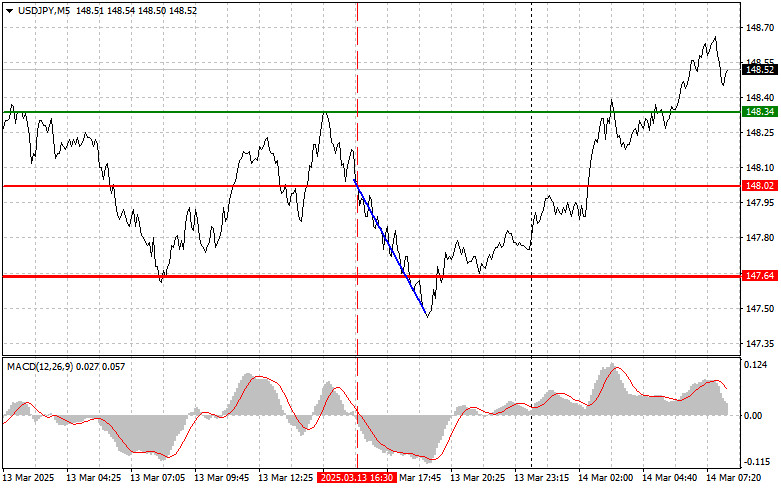 জাপানী ইয়েনের ট্রেডিংয়ের পর্যালোচনা এবং টিপস যখন MACD সূচকটি সবেমাত্র শূন্যের নিচে নামতে শুরু করেছিল তখন এই পেয়ারের মূল্য 148.02 এর লেভেল টেস্ট করেছিল, যা ডলার বিক্রির জন্য একটি সঠিক এন্ট্রি পয়েন্ট নিশ্চিত করেছিল। এর ফলে, এই পেয়ারের মূল্য 147.64 এর লক্ষ্যমাত্রায় পৌঁছায়। সেই লেভেল থেকে রিবাউন্ডের সময় এই পেয়ার ক্রয় করলে অতিরিক্ত 40 পিপস লাভের সুযোগ তৈরি হয়েছিল। জাপানের কেন্দ্রীয় ব্যাংক কর্তৃক ভবিষ্যতে আরও সুদের হার বৃদ্ধির প্রত্যাশা ইয়েনের ক্রয় প্রবণতা অব্যাহত রেখেছে। জাপানি ইয়েনের সম্ভাব্য উচ্চ রিটার্ন থেকে লাভবান হতে আগ্রহী বিনিয়োগকারীরা সক্রিয়ভাবে বিদেশি মুদ্রাকে ইয়েনে রূপান্তর করছে। এই প্রক্রিয়াটি জাতীয় মুদ্রাকে সমর্থন যোগাচ্ছে এবং আন্তর্জাতিক বাজারে এটিকে আরও আকর্ষণীয় করে তুলছে। অর্থনীতিবিদরা মনে করছেন যে, চলমান মুদ্রাস্ফীতির চাপে জাপানের কেন্দ্রীয় ব্যাংক সম্ভবত তাদের মুদ্রানীতি আরও কঠোর করবে। সুদের হার আরও বৃদ্ধি পেলে জাপানে মূলধনের প্রবাহ বাড়তে পারে, যা ইয়েনের মূল্যের ঊর্ধ্বমুখী প্রবণতাকে শক্তিশালী করবে। একই সময়ে, মার্কিন ফেডারেল রিজার্ভের আরও ডোভিশ বা নমনীয় নীতিমালা প্রণয়নের সম্ভাবনা বৃদ্ধি পেয়েছে, কারণ মুদ্রাস্ফীতি প্রতিবেদনের সাম্প্রতিক ফলাফল অর্থনীতিবিদদের পূর্বাভাসের তুলনায় উল্লেখযোগ্যভাবে নিম্নমুখী ছিল। বিনিয়োগকারীরা এই মন্থর মুদ্রাস্ফীতিকে ফেডের সুদের হার কমানোর একটি সম্ভাব্য সংকেত হিসেবে দেখছে, যা মার্কেটে আশাবাদ সৃষ্টি করেছে। ট্রেডাররা ফেডের ভবিষ্যৎ নীতিমালার ব্যাপারে তাদের প্রত্যাশার সমন্বয় করছে, যা ডলারের মূল্যের মুভমেন্টে প্রতিফলিত হচ্ছে। দৈনিক কৌশল হিসেবে, আমি মূলত পরিকল্পনা #1 এবং পরিকল্পনা #2 বাস্তবায়নের উপর নির্ভর করবো।