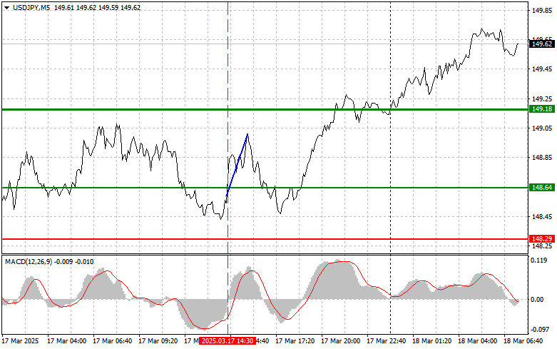 জাপানী ইয়েনের ট্রেডিংয়ের পর্যালোচনা এবং টিপস যখন MACD সূচকটি শূন্যের নিচ থেকে উপরের দিকে যাওয়া শুরু করেছিল তখন এই পেয়ারের মূল্য 148.64 এর লেভেল টেস্ট করেছিল, যা ডলার কেনার জন্য সঠিক এন্ট্রি পয়েন্ট নিশ্চিত করেছিল। এর ফলে, এই পেয়ারের মূল্য 40 পিপস পর্যন্ত বৃদ্ধি পেয়েছিল, তবে প্রথম প্রচেষ্টায় মূল্য 149.18 লেভেলে পৌঁছাতে ব্যর্থ হয়েছিল। আজ, জাপানের পরিষেবা খাত কার্যক্রম সূচকের প্রতিবেদন প্রকাশিত হয়েছে। এই প্রতিবেদনের ফলাফল ইয়েনকে সমর্থন যোগায়নি, যার ফলে USD/JPY পেয়ারের মূল্যের ঊর্ধ্বমুখী কারেকশন অব্যাহত ছিল। এই প্রতিবেদনের ফলাফল পূর্ববর্তী অনুমানের তুলনায় কিছুটা ইতিবাচক হলেও এটি অর্থনৈতিক প্রবৃদ্ধিতে মন্থরতার সংকেত দিয়েছে। বিশ্লেষকরা মনে করছেন যে বৈশ্বিক অর্থনীতির চলমান অনিশ্চয়তা এবং দেশীয় বাজারে ভোক্তাদের সতর্ক মনোভাব এই মন্থরতার জন্য দায়ী। তবে, রপ্তানি খাত এবং অবকাঠামো খাতে সরকারের বিনিয়োগের কারণে জাপানের অর্থনৈতিক স্থিতিশীলতার ইঙ্গিত পাওয়া যাচ্ছে। ব্যাংক অফ জাপান এখনও কঠোর মুদ্রানীতি অনুসরণ করছে এবং প্রয়োজন হলে সুদের হার আরও বাড়ানোর পরিকল্পনা করছে। দৈনিক কৌশল হিসেবে, আমি মূলত পরিকল্পনা #1 এবং পরিকল্পনা #2 এর উপর নির্ভর করবো।
