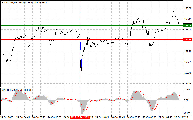 USD/JPY পেয়ারের ট্রেডের বিশ্লেষণ এবং টিপস যখন MACD সূচকটি সবেমাত্র শূন্যের উপরে ওঠা শুরু করেছিল, তখন USD/JPY পেয়ারের মূল্য 152.34 লেভেল টেস্ট করে—যা ডলার কেনার জন্য একটি সঠিক এন্ট্রি পয়েন্ট নিশ্চিত করেছিল। তবে, এই পেয়ারের মূল্যের তেমন কোনো শক্তিশালী ঊর্ধ্বমুখী মোমেন্টাম দেখা যায়নি। আগের দিনের ছোট একটি রিবাউন্ডের পর ডলারের দর আবার ইয়েনের বিপরীতে হ্রাস পায়, যেখানে মূল কারণ ছিল মার্কিন যুক্তরাষ্ট্র ও চীনের মধ্যে বাণিজ্য উত্তেজনা কমে যাওয়ার প্রত্যাশার ভিত্তিতে মার্কেটে সৃষ্ট আশাবাদ। তবে সেই আশাবাদ দীর্ঘস্থায়ী হয়নি, এবং বিনিয়োগকারীরা বিশ্বব্যাপী চলমান অর্থনৈতিক অনিশ্চয়তার মধ্যেই আরও রক্ষণশীল অ্যাসেটে বিনিয়োগ করছেন, যার মধ্যে ইয়েন অন্যতম। ইয়েনের মূল্যের ঊর্ধ্বমুখী প্রবণতার কারণ হচ্ছে ঐতিহ্যবাহী নিরাপদ কারেন্সি হিসেবে এটির গ্রহণযোগ্যতা, যা সাধারণত ফিন্যান্সিয়াল মার্কেটে অস্থিরতার সময় বিনিয়োগকারীদের মধ্যে চাহিদা সৃষ্টি করে। বাণিজ্য যুদ্ধ, ধীরগতির অর্থনৈতিক প্রবৃদ্ধি এবং ভূ-রাজনৈতিক অনিশ্চয়তার বিরুদ্ধে সুরক্ষিত থাকতে অনেক বিনিয়োগকারী ইয়েনকে একটি নির্ভরযোগ্য বিকল্প মনে করেন। এছাড়াও, ডলারের ওপর চাপ সৃষ্টি করছে যুক্তরাষ্ট্রের অভ্যন্তরীণ রাজনৈতিক প্রেক্ষাপট, বিশেষ করে চলমান সরকারি কার্যক্রমের শাটডাউ। বর্তমান পরিস্থিতিতে সামষ্টিক অর্থনৈতিক প্রতিবেদন প্রকাশিত না হওয়ার বিষয়টি ট্রেডারদের ওপর প্রভাব ফেলছে, কারণ এটি ফেডারেল রিজার্ভের পরবর্তী পদক্ষেপ সম্পর্কে অনিশ্চয়তা সৃষ্টি করছে। কিছু অর্থনীতিবিদের বিশ্বাস, ফেড হয়তো আগামীতে সুদের হার আরও কমানোর পরিকল্পনা থেকে পিছু হটতেও পারে। দৈনিক কৌশলের ক্ষেত্রে, আমি মূলত পরিকল্পনা 1 এবং পরিকল্পনা 2 বাস্তবায়নের ওপর নির্ভর করব।