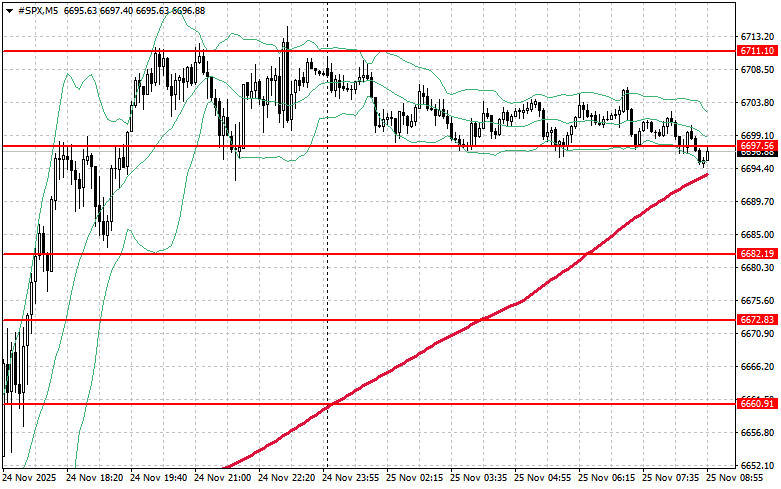 S&P 500-এর টেকনিক্যাল চিত্রের প্রসঙ্গে বলা যায়, আজ ক্রেতাদের মূল লক্ষ্য হবে সূচকটিকে নিকটতম রেজিস্ট্যান্স লেভেল $6,854 অতিক্রম করানো। এই লেভেল ব্রেক করলে সূচকটির আরো ঊর্ধ্বমুখী প্রবণতা অব্যাহত থাকতে পারে এবং মূল্য $6,874 লেভেলে উঠে যাওয়ার পথ উন্মুক্ত হবে। পাশাপাশি, ক্রেতাদের জন্য আরেকটি গুরুত্বপূর্ণ লক্ষ্য থাকবে $6,896 লেভেলের উপরে নিয়ন্ত্রণ বজায় রাখা — যা তাদের অবস্থানকে দৃঢ় করবে। যদি ঝুঁকি গ্রহণের প্রবণতা কমে যাওয়ায় মূল্য নিম্নমুখী হয়, তাহলে সূচকটির মূল্য $6,837 লেভেলের আশপাশে থাকা অবস্থায় ক্রেতাদের সক্রিয় হতে হবে। এই লেভেল ব্রেকআউট করে সূচকটি নিম্নমুখী হলে, মূল্য দ্রুত $6,819-এ নেমে যেতে পারে এবং সেখান থেকে $6,801-এ যাওয়ার সম্ভাবনা উন্মুক্ত হবে।