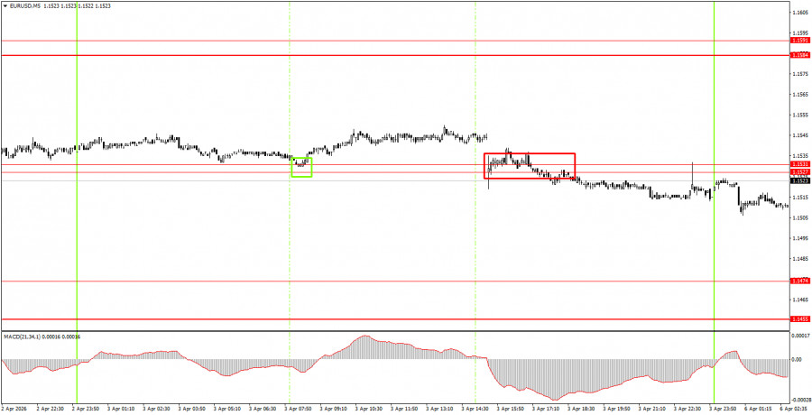 EUR/USD পেয়ারের 5M চার্ট শুক্রবার ৫-মিনিটের টাইমফ্রেমে দুটি ট্রেডিং সিগন্যাল গঠিত হয়। ইউরোপীয় ট্রেডিং সেশনের শুরুতে এই পেয়ারের মূল্য 1.1527-1.1531 এরিয়ার কাছ থেকে বাউন্স করেছিল, কিন্তু মূল্য কেবল 10 পিপস বৃদ্ধি পেয়েছিল। মার্কিন ট্রেডিং সেশনের শুরুতে এই পেয়ারের মূল্য 1.1527-1.1531 এরিয়ার নিচে কনসোলিডেট করলেও মাত্র 10 পিপস দরপতন হয়েছে।