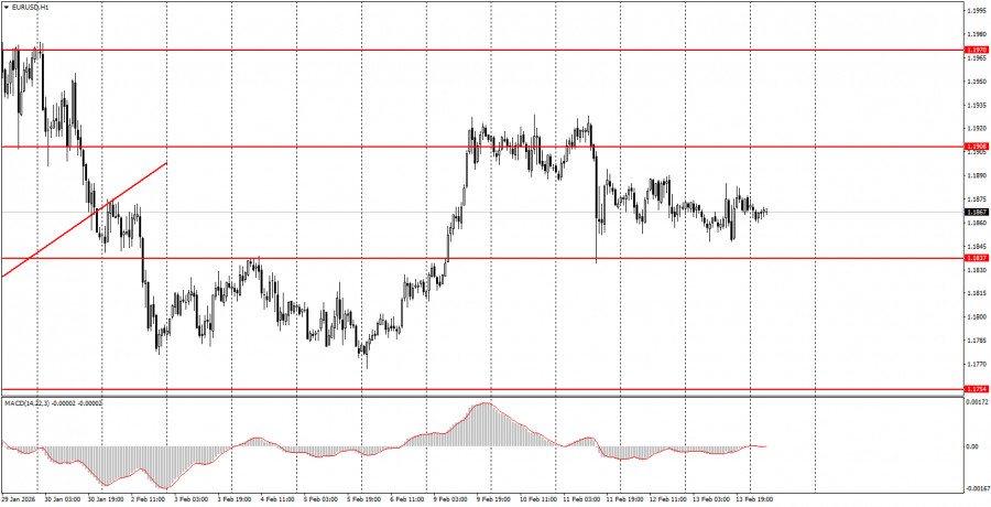 শুক্রবারের ট্রেডিংয়ের পর্যালোচনা: EUR/USD পেয়ারের 1-ঘন্টার চার্ট শুক্রবার EUR/USD কারেন্সি পেয়ারের একেবারে সাইডওয়েজ রেঞ্জভিত্তিক ট্রেডিং পরিলক্ষিত হয়েছে, সেইসাথে অস্থিরতার মাত্রাও খুবই কম ছিল। উল্লেখযোগ্য যে বুধবার যুক্তরাষ্ট্রে শ্রমবাজার ও বেকারত্ব সংক্রান্ত গুরুত্বপূর্ণ প্রতিবেদন প্রকাশিত হয়েছিল। এটি বলা যাবে না যে ট্রেডাররা সেগুলোর ফলাফল সম্পূর্ণভাবে উপেক্ষা করেছে, তবে মার্কেটে সৃষ্ট প্রতিক্রিয়া বেশ অদ্ভুত ও দ্ব্যর্থভাবাপন্ন ছিল—যেমনটি প্রতিবেদনগুলোর ফলাফলের ক্ষেত্রেও পরিলক্ষিত হয়েছে। যেখানে মাসিক ভিত্তিতে জানুয়ারির বেকারত্ব হার ও ননফার্ম পেরোল প্রতিবেদনের ফলাফলগুলো যথেষ্ট ইতিবাচক ছিল, সেখানে 2025 সালের ননফার্ম পেরোলের বার্ষিক ফলাফল 400,000 কমিয়ে সংশোধন করা হয়েছে। আমাদের দৃষ্টিতে, ননফার্ম পেরোল প্রতিবেদন বার্ষিক ফলাফল মাসিক ফলাফলের চেয়ে বেশি গুরুত্বপূর্ণ ছিল, তাই ডলারের দরপতন হওয়াই উচিত ছিল। শুক্রবারে যুক্তরাষ্ট্রে মুদ্রাস্ফীতি প্রতিবেদন প্রকাশিত হয়েছিল এবং তা আপেক্ষিকভাবে গুরুত্বপূর্ণ ফলাফল প্রদর্শন করেছে। দেশটির মুদ্রাস্ফীতির হার কমে 2.4%-এ নেমে এসেছে, যা খুব শীঘ্রই ফেড কর্তৃক পুনরায় মুদ্রানীতি নমনীয়করণ পদক্ষেপ শুরু হওয়ার প্রত্যাশা বাড়িয়েছে। উদাহরণস্বরূপ, ব্যাংক অব ইংল্যান্ডের সর্বশেষ বৈঠকে মুদ্রাস্ফীতির হার 3.4% থাকা সত্ত্বেও তা প্রায় সুদের হার হ্রাসের পর্যায়ে গিয়েছিল, এবং বর্তমানে ব্যাংক অব ইংল্যান্ড ও ফেডারেল রিজার্ভের মূল সুদের হার সমান রয়েছে।