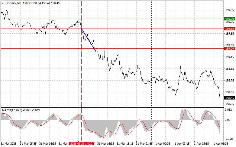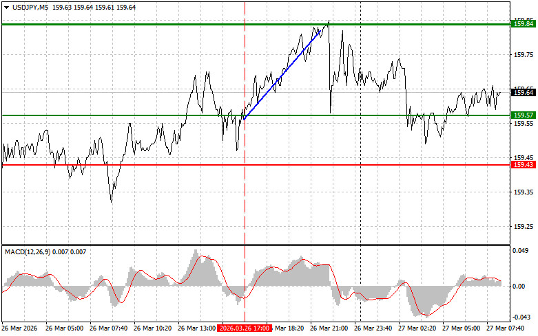 USD/JPY পেয়ারের ট্রেডের বিশ্লেষণ এবং পরামর্শ যখন MACD সূচকটি শূন্যের বেশ নিচে নামতে শুরু করছিল তখন এই পেয়ারের মূল্য 159.63-এর লেভেল টেস্ট করেছিল—যা ডলার বিক্রির জন্য সঠিক এন্ট্রি পয়েন্টকে নিশ্চিত করেছিল। ফলস্বরূপ, এই পেয়ার 159.29-এর লক্ষ্যমাত্রা পর্যন্ত দরপতনের শিকার। ডোনাল্ড ট্রাম্প ঘোষণা দিয়েছেন যে তেহরান ওয়াশিংটনের সঙ্গে আলোচনায় প্রস্তুত না থাকলেও যুক্তরাষ্ট্র ইরানের বিরুদ্ধে সামরিক অভিযান শেষ করবে—যা গতকাল মার্কিন ডলারের দরপতন ঘটিয়েছিল । তবে মধ্যপ্রাচ্যে স্থল বাহিনী মোতায়েন চলমান থাকার প্রেক্ষিতে, মার্কিন প্রেসিডেন্টের এসব মন্তব্য সন্দেহের উদ্রেক করে। ট্রাম্পের লক্ষ্য হচ্ছে মার্কেটকে শান্ত করা ও উত্তেজনা কমানো—যা কিছু অংশে অর্জিত হয়েছে, কিন্তু এই প্রভাব অনেকাংশে স্থায়ী হওয়ার সম্ভাবনা কম। যেকোনো মুহূর্তে নতুন কোনো তীব্র উত্তেজনার লক্ষণ দেখা গেলে আবারও মার্কিন ডলারের চাহিদা বেড়ে যেতে পারে। মার্কিন সামরিক কার্যক্রম—অতিরিক ত সৈন্য মোতায়েন এবং পারস্য উপসাগরে নৌ উপস্থিতি বাড়ানো—এসব ইঙ্গিত দেয় যে আমেরিকান প্রশাসন তৎপর রয়েছে এবং চলমান সংঘাতের দ্রুত সমাপ্তির পরিকল্পনা না রেখে বরং কঠোর পদক্ষেপ গ্রহণের দিকে এগোচ্ছে। মার্কিন প্রেসিডেন্টের এই ধরনের ঘোষণা আলোচনায় আরও অনুকূল শর্তে ইরানকে বাধ্য করার চাপের কৌশল হতে পারে। তবুও উচ্চমাত্রার অনিশ্চয়তার মধ্যে ট্রেডাররা সম্ভাব্য সংঘাতের সংকেতগুলোর প্রতি তাৎক্ষণিকভাবে প্রতিক্রিয়া জানায়, ফলে ডলারের মূল্য আরও হ্রাস পেতে পারে। দৈনিক কৌশল হিসেবে, আমি প্রধানত পরিকল্পনা #1 ও #2 বাস্তবায়নের ওপর নির্ভর করব।