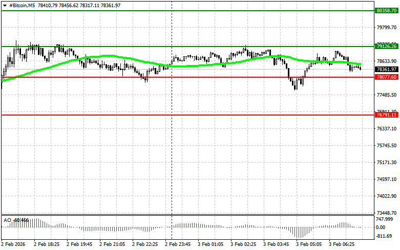 ট্রেডিংয়ের পরামর্শ: টেকনিক্যাল প্রেক্ষাপট অনুযায়ী, BTC‑এর ক্রেতারা এখন এটির মূল্যকে $78,200‑এ প্রত্যাবর্তনের লক্ষ্যে কাজ করছে, যা সরাসরি $81,200 এবং এরপর $83,200‑এর দিকে যাওয়ার সম্ভাবনা উন্মুক্ত করবে। ঊর্ধ্বমুখী প্রবণতার ক্ষেত্রে বিটকয়েনের মূল্যের $85,600‑এর দিকে যাওয়ার লক্ষ্যমাত্রা নির্ধারণ করা যায়। ওই লেভেল ব্রেক করে ঊর্ধ্বমুখী হলে সেটি মার্কেটে বুলিশ প্রবণতা পুনরুদ্ধারের প্রচেষ্টার সূচনা হিসেবে বিবেচিত হতে পারে। নিম্নমুখী প্রবণতার ক্ষেত্রে, বিটকয়েনের মূল্য $75,100‑এ থাকা অবস্থায় ক্রেতারা সক্রিয় হবে। মূল্য ওই এরিয়া ব্রেক করে নিম্নমুখী হলে বিটকয়েনের মূল্য দ্রুত $72,100‑এর দিকে নেমে যেতে পারে, আর পরবর্তীতে প্রায় $68,900 পর্যন্ত দরপতন হতে পারে।