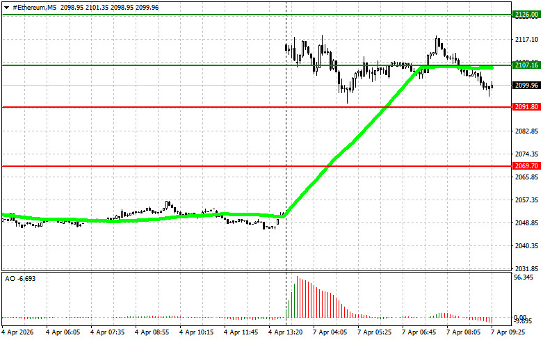 ইথেরিয়াম বাই সিগন্যাল পরিকল্পনা #1: ইথেরিয়ামের মূল্য $2,151-এর লেভেলে বৃদ্ধির লক্ষ্যে $2,114-এর লেভেলে পৌঁছালে আমি এটি কিনব। মূল্য $2,151-এর লেভেলের কাছাকাছি পৌঁছালে আমি ইথেরিয়ামের লং পজিশন ক্লোজ করব এবং রিবাউন্ডের ক্ষেত্রে শর্ট পজিশন ওপেন করব। ব্রেকআউটের ক্ষেত্রে ক্রয় করার আগে, আমি নিশ্চিত করব যে 50-দিনের মুভিং এভারেজ বর্তমানে মূল্যের নিচে রয়েছে এবং অওসাম অসিলেটর পজিটিভ জোনে রয়েছে।