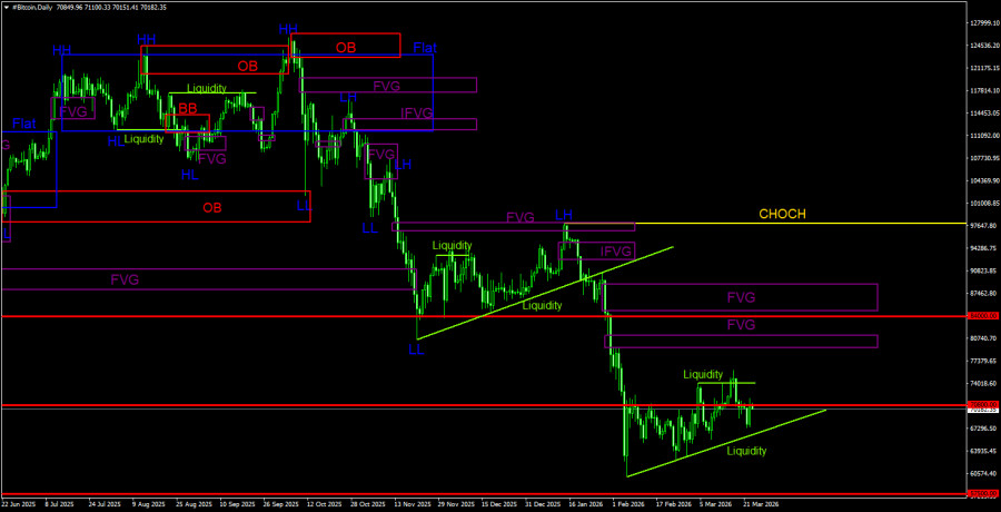 এক মাস ব্যাপী সাইডওয়েজ রেঞ্জভিত্তিক মুভমেন্টের পর বিটকয়েনের মূল্য এক ধরনের ঊর্ধ্বমুখী প্রবণতা প্রদর্শন করেছিল — এবং তা অবিলম্বে শেষ হয়ে গেছে। দৈনিক টাইমফ্রেমে পরিলক্ষিত ঊর্ধ্বমুখী মুভমেন্টকে একটি দুর্বল কারেকশন হিসেবেই বিবেচনা করা হচ্ছে, এবং নিচে একটি লিকুইডিটি পুল রয়েছে যেটি প্রায় 90% সম্ভাবনার সাথে কার্যকর হওয়ার সম্ভাবনা রয়েছে। 4 ঘণ্টার টাইমফ্রেম লক্ষ্য করলে দেখা যাচ্ছে যে বিটকয়েনের মূল্য কতটা ধীরগতিতে বাড়ছে, যদি তা বাড়ছে বলে গণ্য করা হয়। দ্রুত ও তীব্র দরপতন এবং মন্থর গতিতে বৃদ্ধি হল নিম্নমুখী প্রবণতা ঐতিহ্যবাহী নির্দেশক। সুতরাং, আমাদের দৃষ্টিভঙ্গি অপরিবর্তিত রয়েছে — ক্রিপ্টো মার্কেটের নিম্নমুখী প্রবণতার সমাপ্তি ঘটেনি; মার্কেট নাটকীয়ভাবে স্থবির অবস্থায় রয়েছে।এদিকে, ডোনাল্ড ট্রাম্প মধ্যপ্রাচ্যে চলমান সামরিক সংঘাত সমাধানের ব্যাপারে প্রাথমিক পদক্ষেপ নিয়েছেন। গতকাল মার্কিন প্রেসিডেন্ট ইরানের সাথে সফল আলোচনার বিষয়ে আলোকপাত করেন — যা তেহরান তাৎক্ষণিকভাবে অস্বীকার করেছে। তবে বাস্তবেই আলোচনা হয়েছে কি না সেকথা থাক; মার্কিন প্রেসিডেন্ট এই যুদ্ধ অবসানের সম্ভাবনা ব্যক্ত করেছেন এটাই আসল কথা। অন্যান্য অনেক ঝুঁকিপূর্ণ অ্যাসেটের মতো, সেই খবরের প্রেক্ষাপটে বিটকয়েনের মূল্য সংক্ষিপ্তভাবে বেড়েছিল, যদিও তা দ্রুত ম্লান হয়ে যায়।গতকাল আবার জানা গেছে যে স্ট্র্যাটেজি বিটকয়েন ক্রয়ের জন্য আরও $44 বিলিয়ন বরাদ্দের পরিকল্পনা করছে। কোম্পানিটি জানিয়েছে যে তাঁরা এমএসটিআর-এর শেয়ার $21 বিলিয়ন এবং পার্পেচুয়াল প্রেফার্ড স্টক ইস্যু করে বাকি $21 বিলিয়ন সংগ্রহ করবে। সকল অর্থ "ডিজিটাল স্বর্ণ" ক্রয়ের জন্য ব্যবহার করা হবে। সুতরাং মাইকেল সেলারের কোম্পানি এখনও মূল কৌশল অনুসরণ করে চলেছে, কোম্পানিটি যেকোনো মূল্যে সকোল মূলধন ব্যবহার করে বিটকয়েন ক্রয় করছে। শেয়ারগুলো ধাপে ধাপে বিক্রি করা হবে; বর্তমানে, কোম্পানির কাছে 763,000 টি বিটকয়েন রয়েছে যার মূল্য প্রায় $54 বিলিয়ন। সুতরাং, স্ট্র্যাটেজি তাঁদের বিটকয়েনের ব্যালেন্স প্রায় দেড় থেকে দুইগুণ বাড়ানোর পরিকল্পনা করছে। এটি কি বিটকয়েনের জন্য ইতিবাচক হবে, যা প্রায় ছয় মাস ধরে নিম্নমুখী প্রবণতার মধ্যে আছে?
