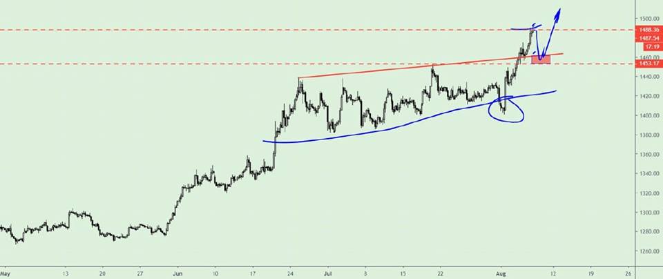 যুক্তরাষ্টে ও ইউকে তে মন্দার ঝুকি তৈরি হওয়ায় গত কয়েক সপ্তাহ মার্কেট কিছুটা অস্বাভাবিক আচারন করেছে বলে আমার কাছে মনে হয়েছে। িএখনো মন্দার ঝুকি আছেই ট্রেড ওয়ার ও ব্রেক্সিট এর কারনে তবে এই সপ্তাহ মার্কেট স্বাভাবিক লাগছে আমার কাছে। মন্দার সময় সরকার কারেন্সি রেটকাট সহ বিভিন্ন ওয়েতে মানি সাপ্লাই বাড়িয়ে দেয় ফলে কারেন্সির বিপরীতে গোল্ড এর দাম বাড়ে। সেটাই এখন হচ্ছে। তবে আমরা যেহেতু ফান্ডামেন্টালে এক্সাপার্ট নই তাই টেকনিকালই আমাদের মুল ভরসা। তাই শুধুমাত্র টেকনিক্যাল এনালাইসিস এ যদি কেউ গোল্ড এ বাই সেটাপ পান তাহলে বাই করা নিরাপদ বলে মনে হয় আমার কাছে।